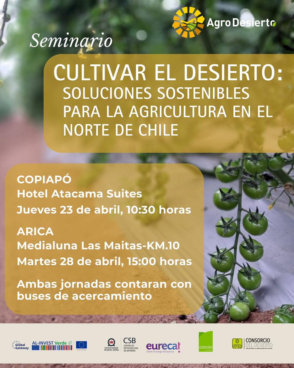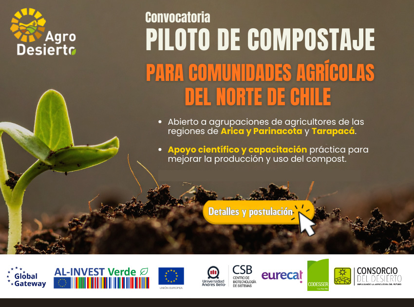 AgroDesierto es un proyecto AL-INVEST Verde financiado por la Unión Europea y liderado por el Centro de Biotecnología de Sistemas de la Universidad Andrés Bello, en coejecución con Eurecat, el principal centro tecnológico de Cataluña, y Codesser, con la colaboración del Consorcio del Desierto.